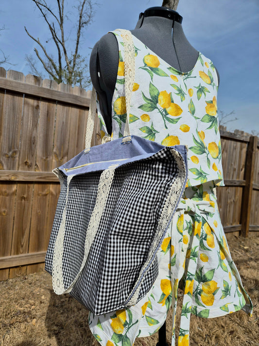 Gingham Lace Market Tote | 100% Cotton Tote Bag