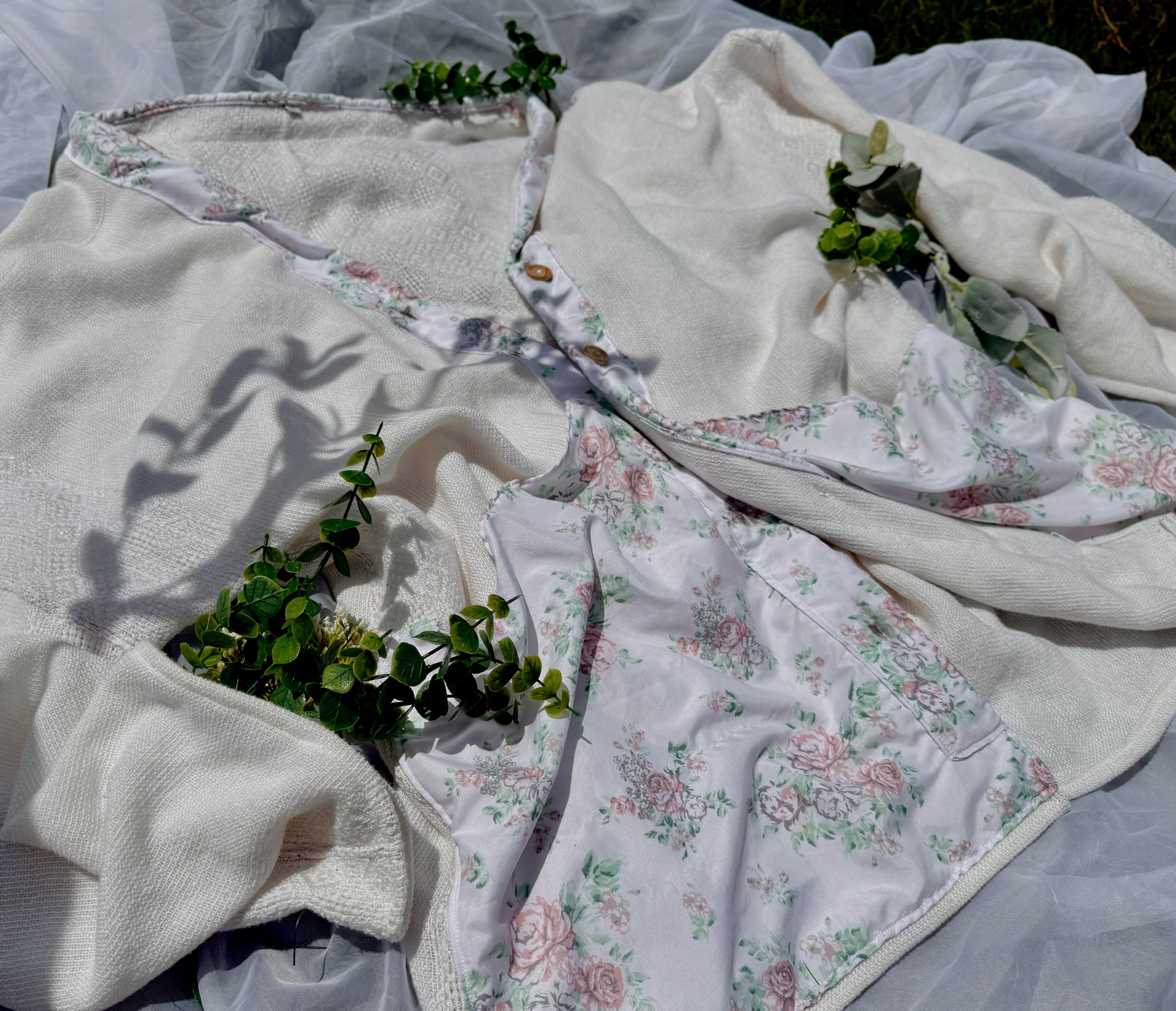 This listing is for the Woman's Cardigan. Please choose the appropriate size you normally buy in stores. Wildflower Enchanted tests garment patterns on owner to account for "true to size" for USA sizing. Photos are examples of what the set will look like (not in fabric, fabrics will be different in some cases)